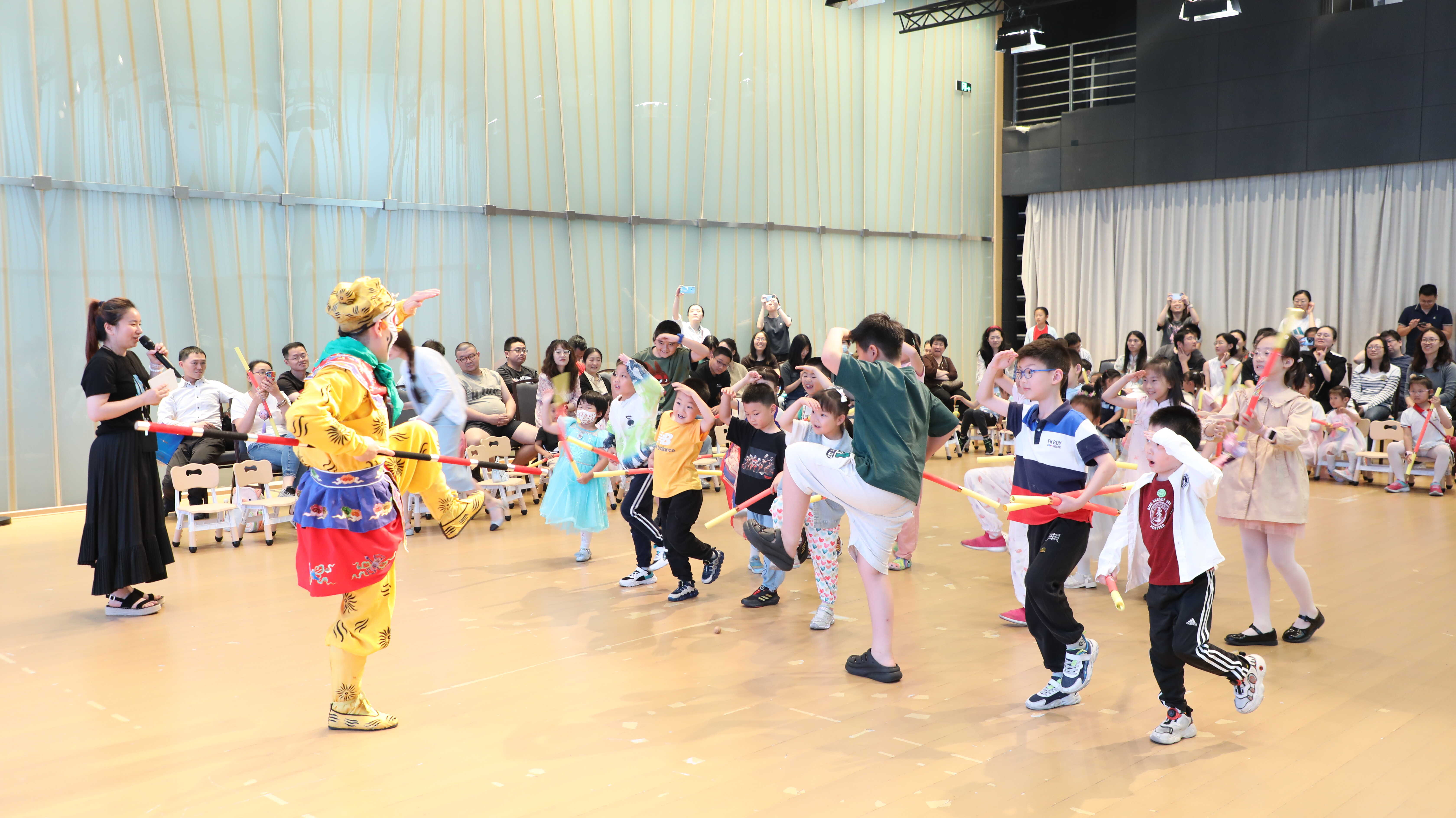 活動(dòng)特別邀請國家二級演員婁云嘯和上海昆劇團(tuán)優(yōu)秀青年演員譚許亞與小朋友們一同打開孫悟空的“戲曲百寶箱”,現(xiàn)場觀看美猴王勾臉變身,學(xué)習(xí)不同年代的孫行者專屬“私服”的變化,了解角色背后戲曲的發(fā)展脈絡(luò)。劇院里,小朋友們手持金箍棒一個(gè)個(gè)化身為傳統(tǒng)戲劇表演的小小鑒賞家,欣賞妙趣猴戲的同時(shí),還與齊天大圣一起打把勢,現(xiàn)場“尋妖”“捉妖”,開懷大笑。在隨后的國潮手作環(huán)節(jié),科學(xué)家父母們與小朋友們一起制作絹人版迷你孫悟空,穿針引線,將戲服一件件拼貼上身,在非遺技藝的學(xué)習(xí)中,感受戲曲藝術(shù)的魅力,享受愉快的親子時(shí)光。