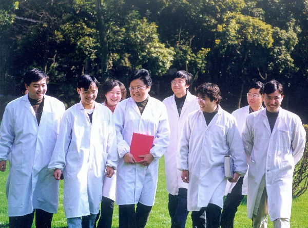 2002年,王恩多院士和她的學(xué)生們?cè)谝黄?/p>