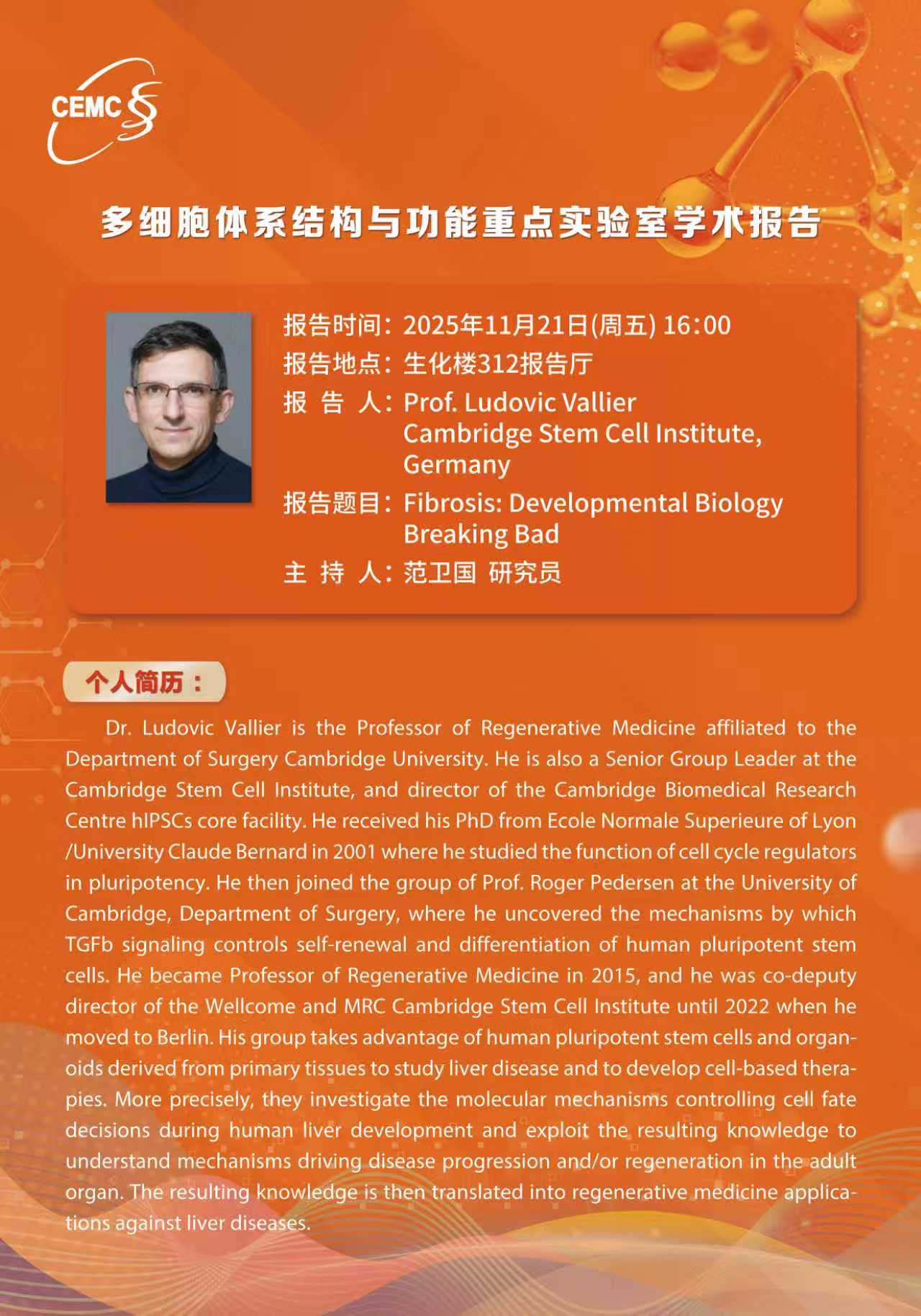 Prof. Ludovic Vallier,?Cambridge Stem Cell institute,?Germany:?Fibrosis: Developmental Biology?Breaking Bad