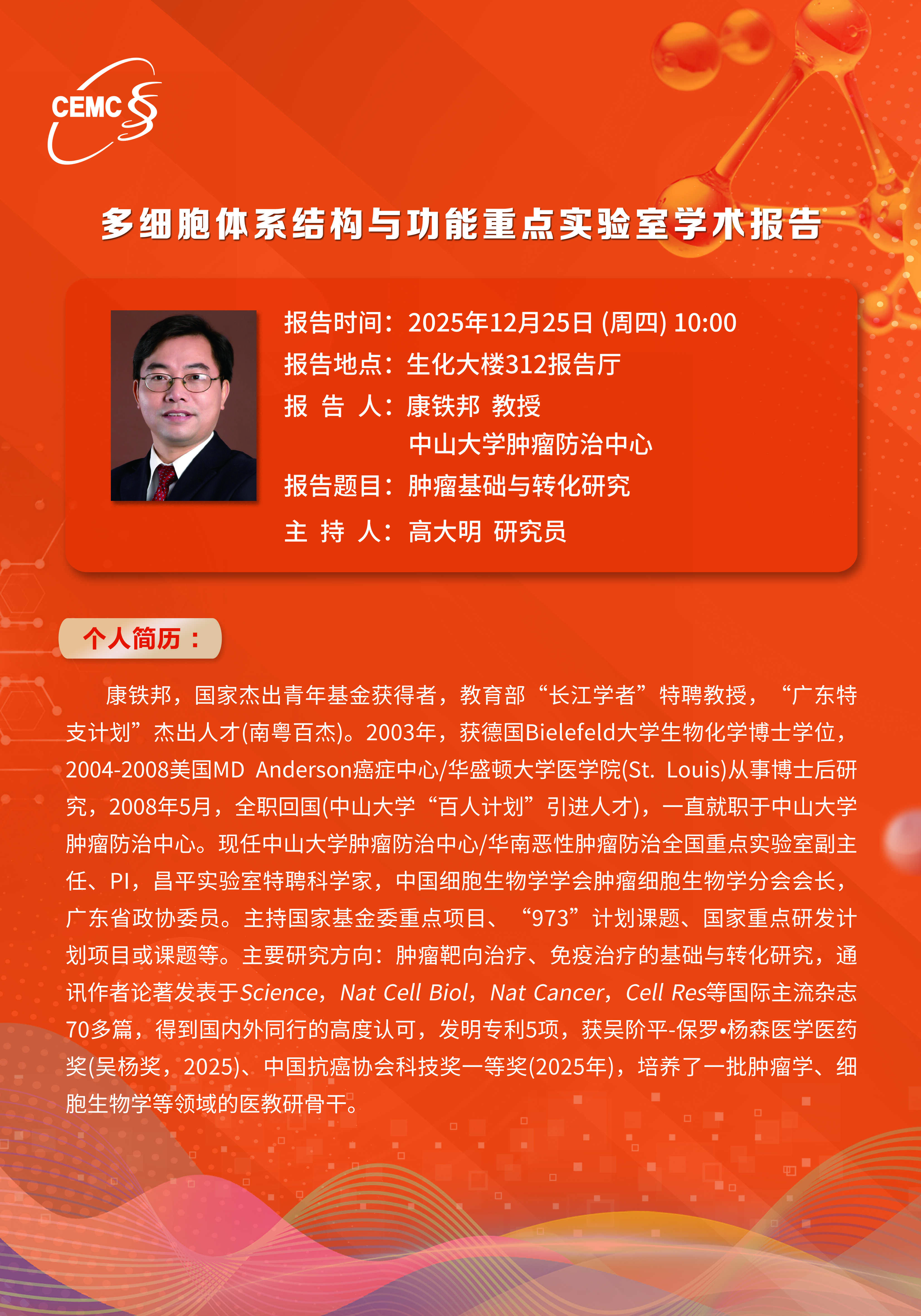 中山大學(xué)腫瘤防治中心?康鐵邦 教授:腫瘤基礎(chǔ)與轉(zhuǎn)化研究