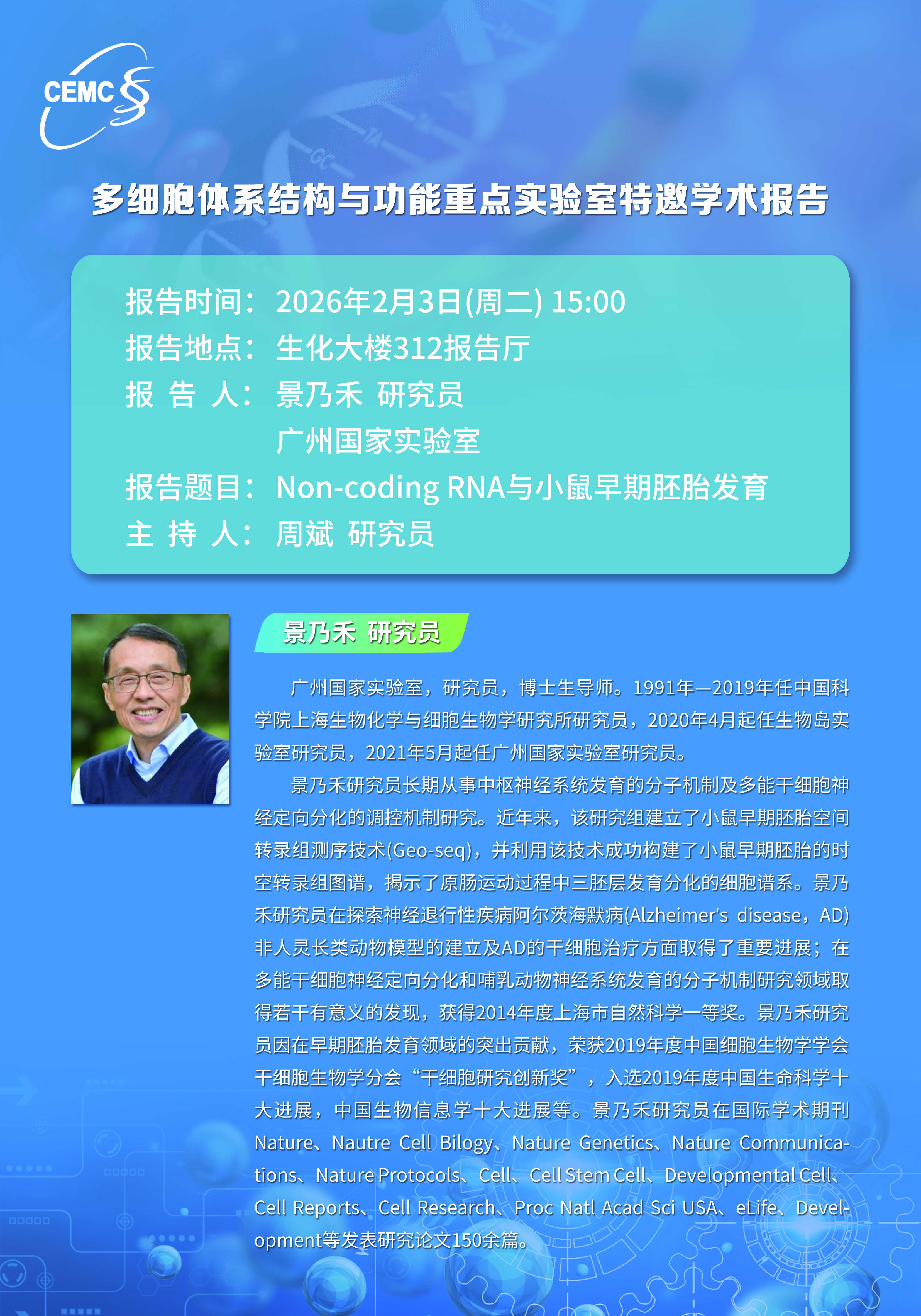 廣州國家實驗室?景乃禾?研究員:Non-coding RNA與小鼠早期胚胎發(fā)育