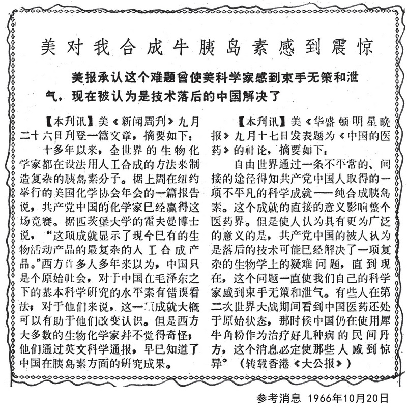 美對我合成牛胰島素感到震驚